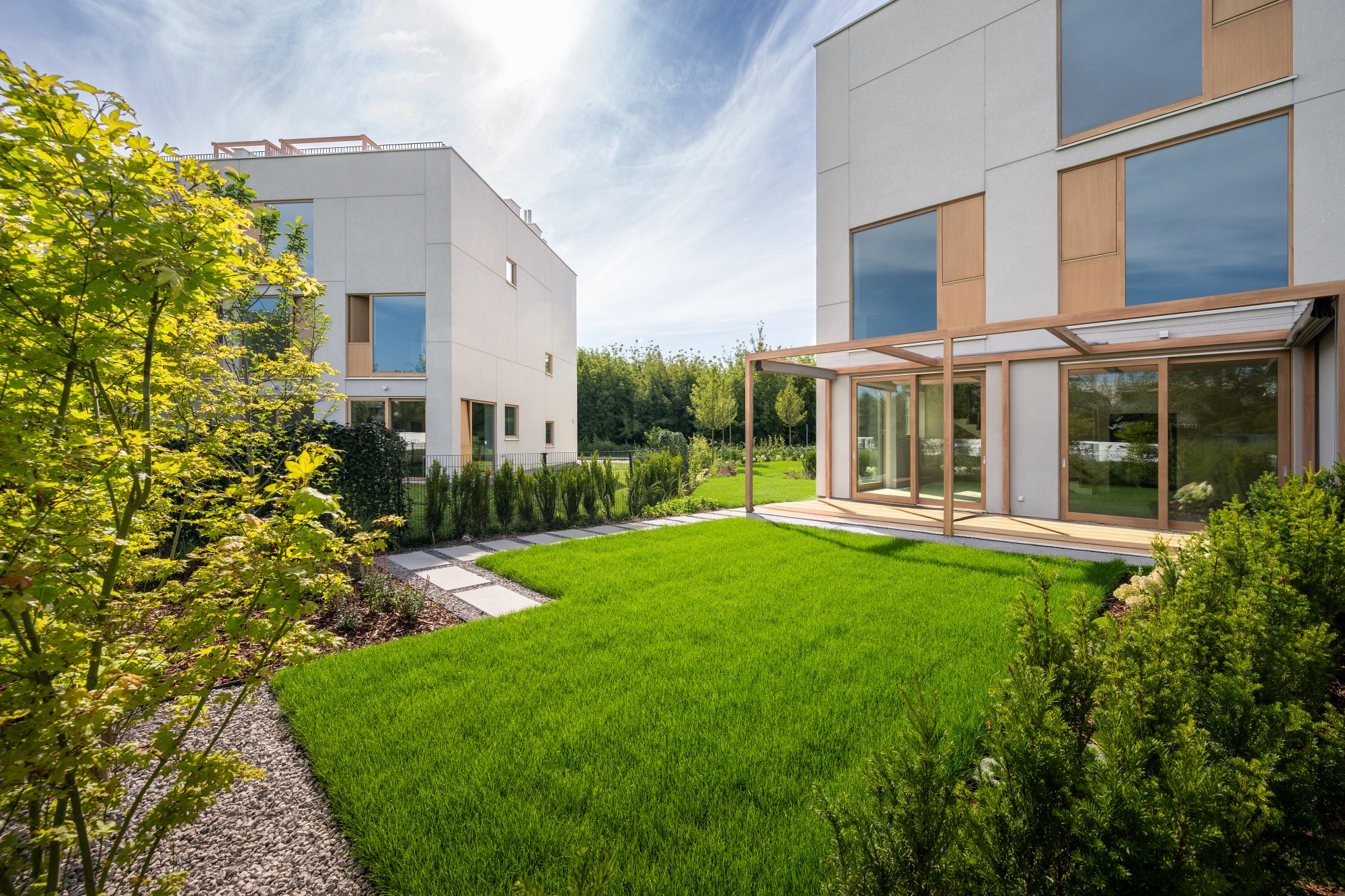 Obcowanie z naturą koi, odpręża, sprzyja regeneracji. Domy usytuowane w prywatnym parku z jeziorkiem dostępnym dla mieszkańców, to prawdziwa oaza spokoju w środku metropolii.