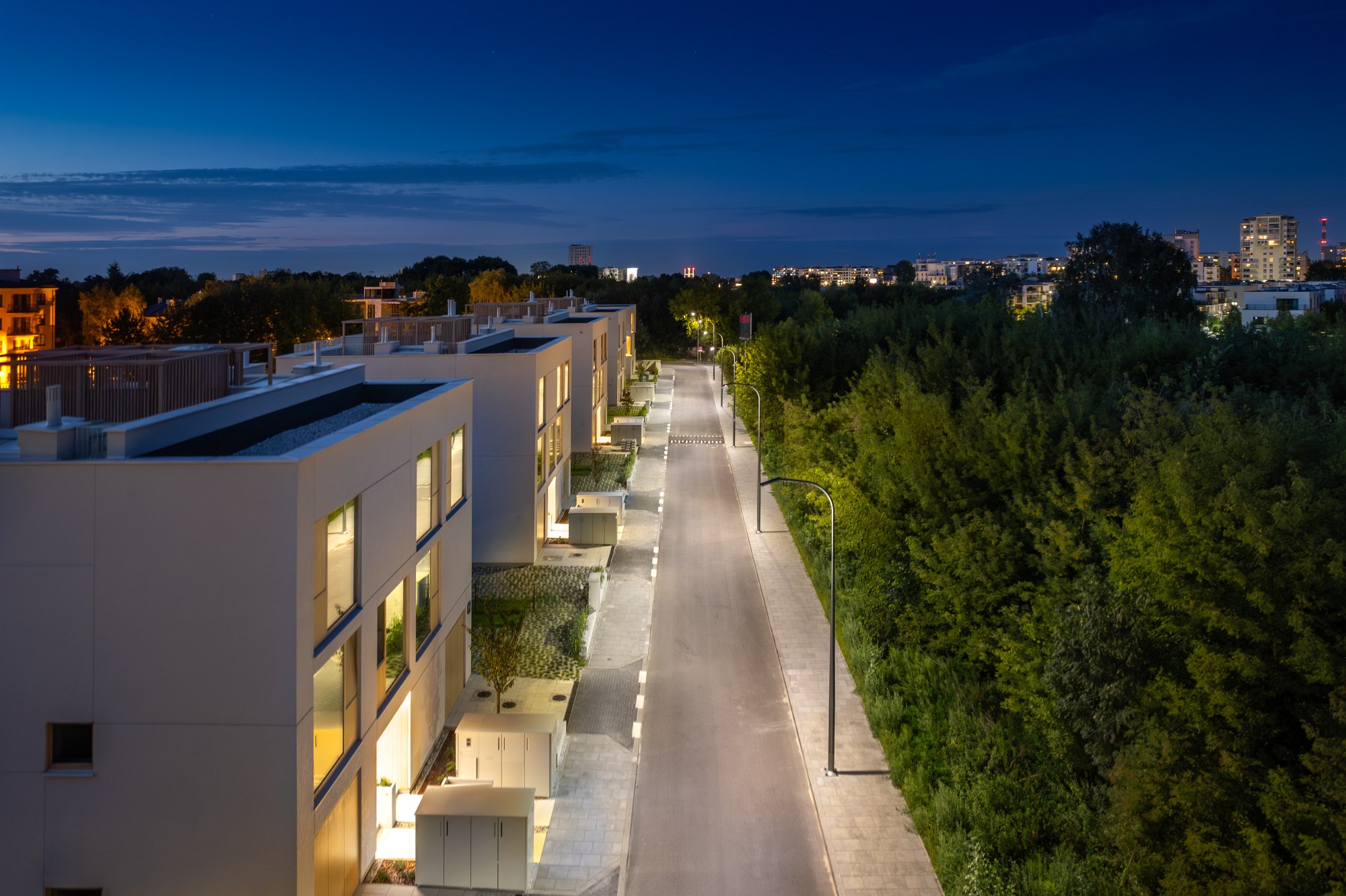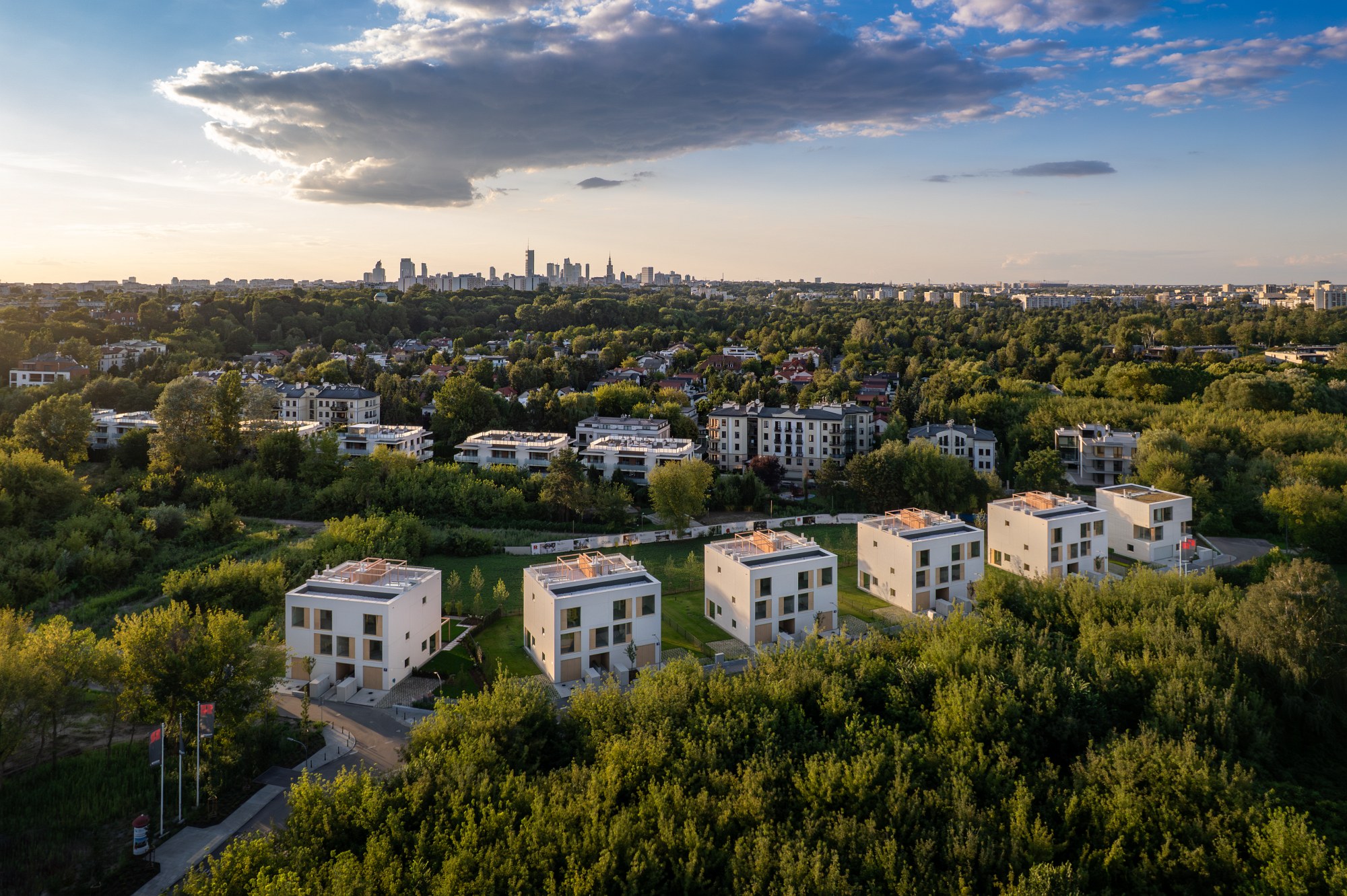 Obcowanie z naturą koi, odpręża, sprzyja regeneracji. Domy usytuowane w prywatnym parku z jeziorkiem dostępnym dla mieszkańców, to prawdziwa oaza spokoju w środku metropolii.
