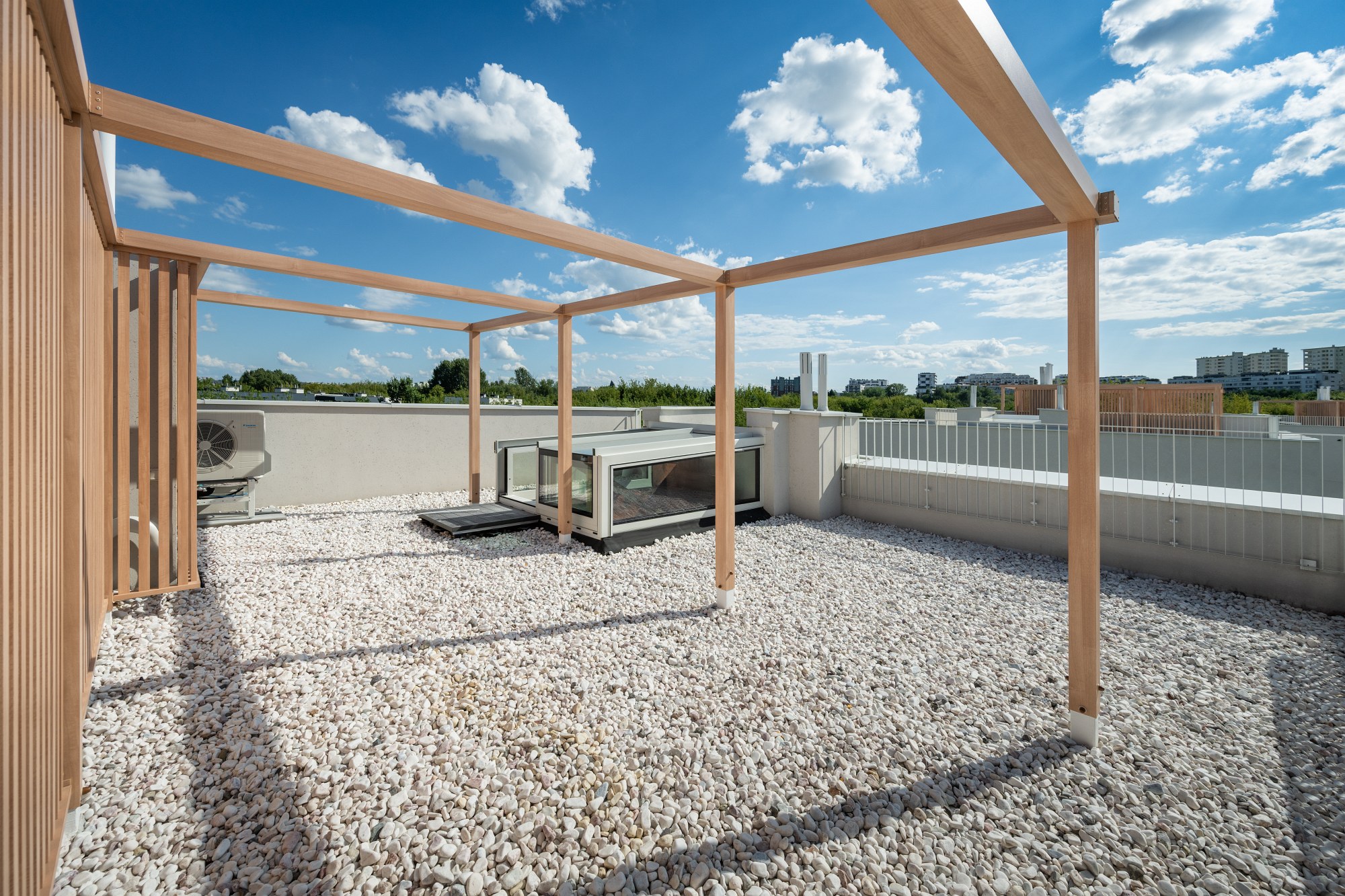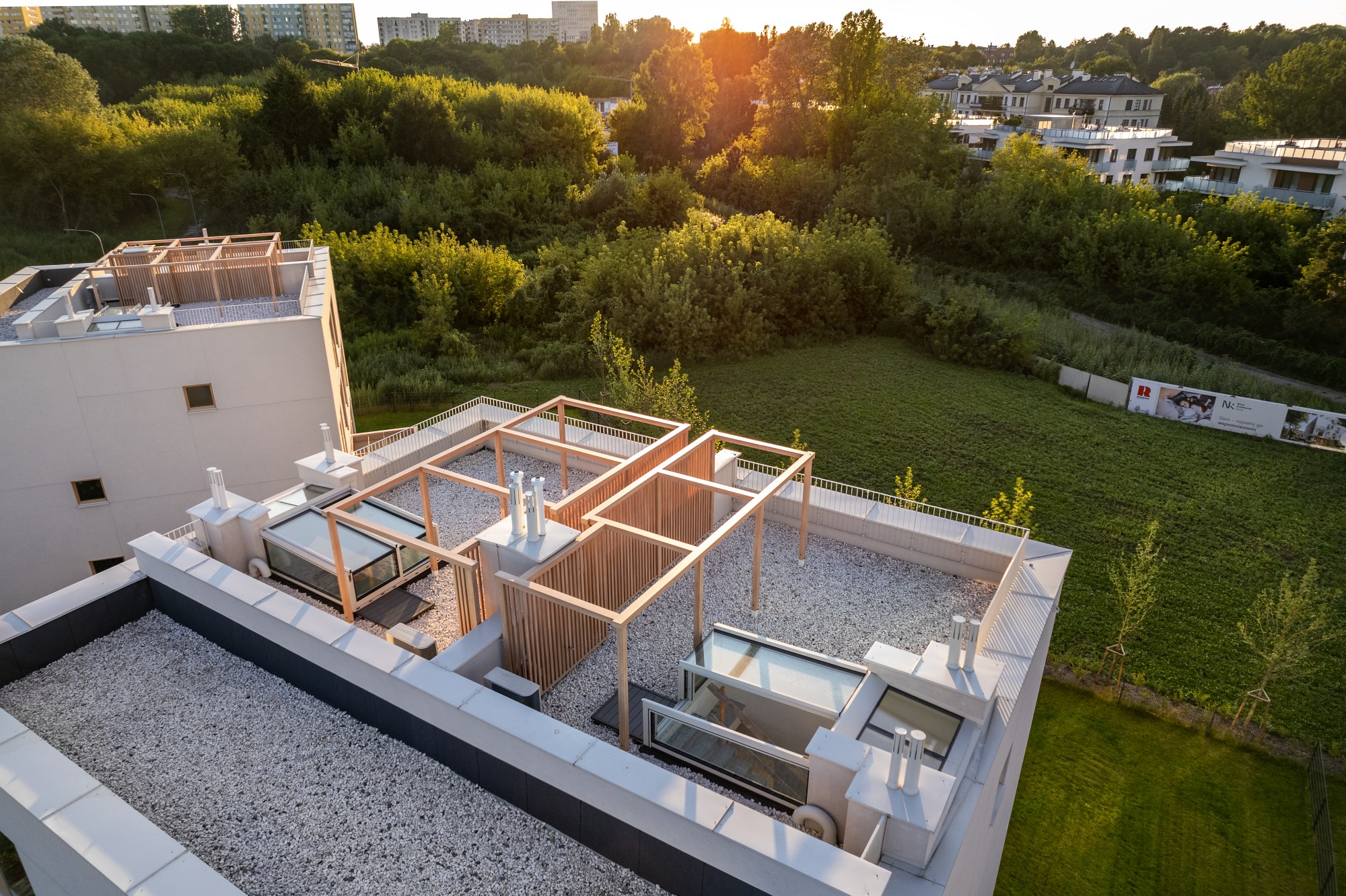Prywatny park z oczkiem wodnym, który powstał w ramach inwestycji, to unikalna ostoja dla społeczności mieszkańców i lokalnej przyrody, z miejscem na zabawę i wytchnienie, która zainspiruje do aktywności i sąsiedzkich spotkań. Każdy dzień zacznie się tutaj od pięknych widoków drzew i spokojnej tafli jeziora – i życie nabierze łagodności.